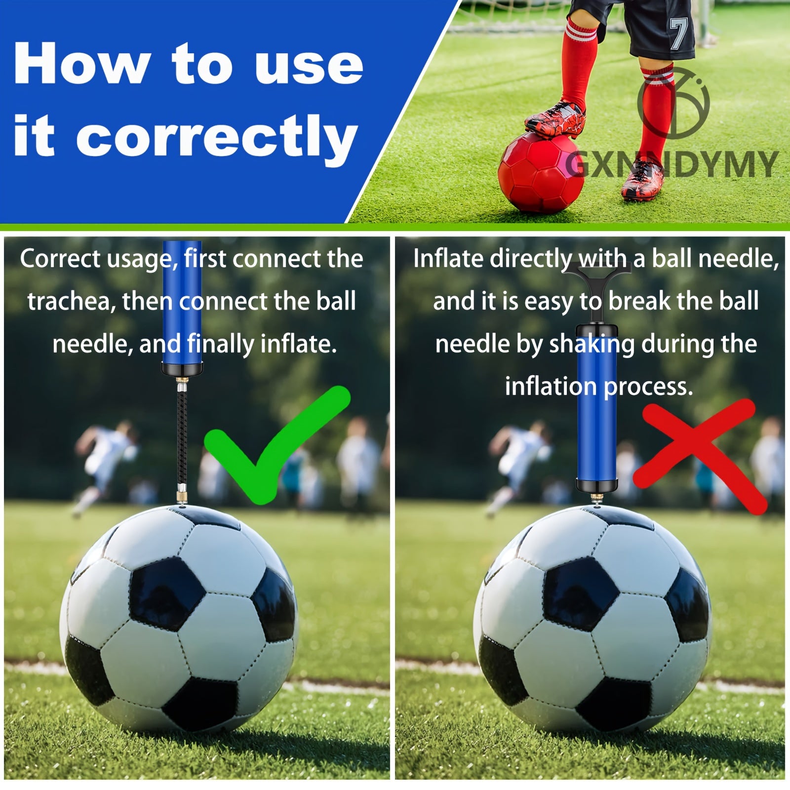Portable Air Pump, Ball Pump Inflator Kit With Needle, Nozzle, Extension Hose For Soccer Basketball Football Volleyball Water Polo Rugby Exercise Sports Ball Balloon Swim Inflatables, Blue