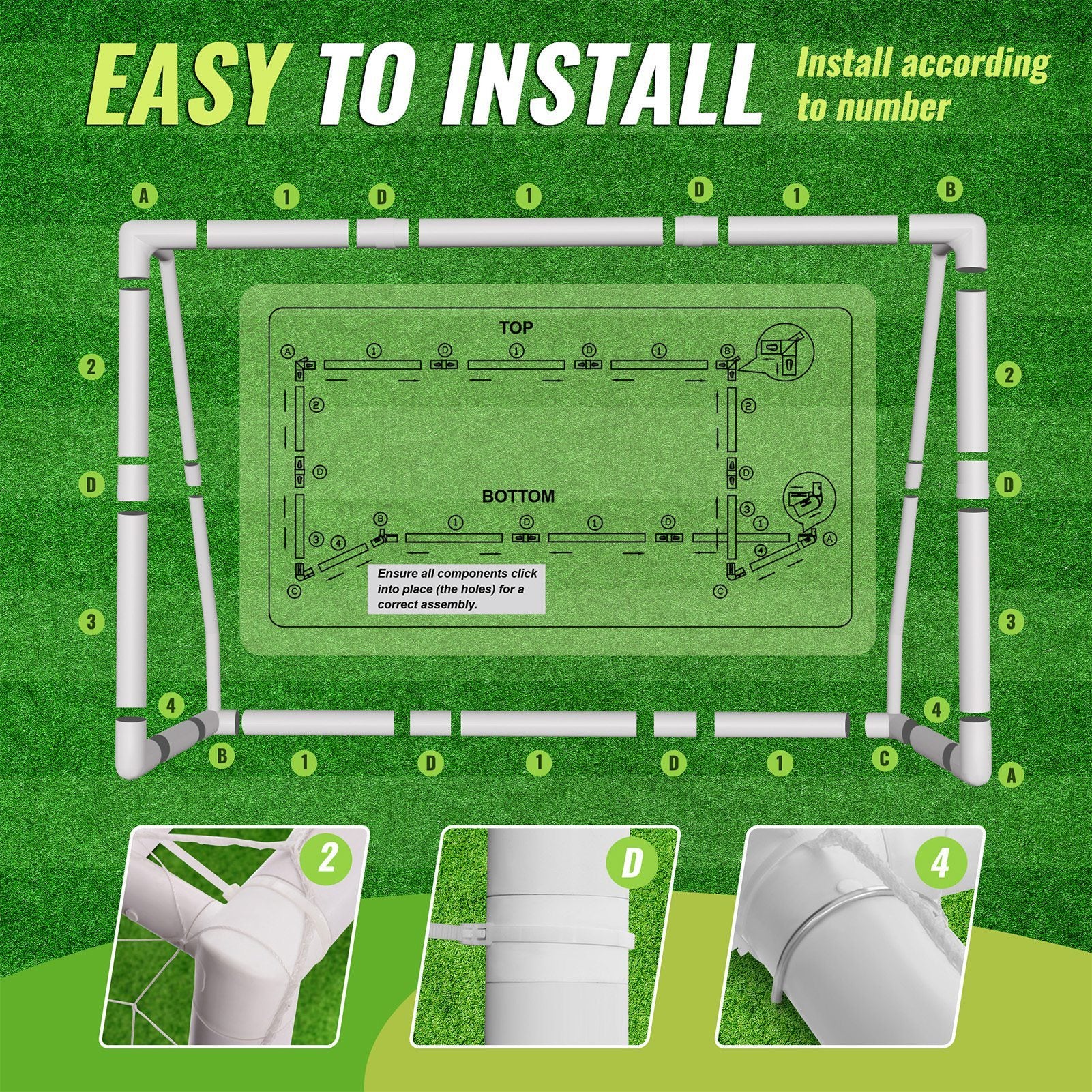 Rengue Soccer Goal, 152.4x243.84cm Backyard Soccer Goal, PVC Soccer Goals, Full Size Soccer Goal, Training Soccer Net Set With High- Strength Nets, Ground Stakes And Carry Bag- Sturdy Goal Post Soccer Accessories For Improvin